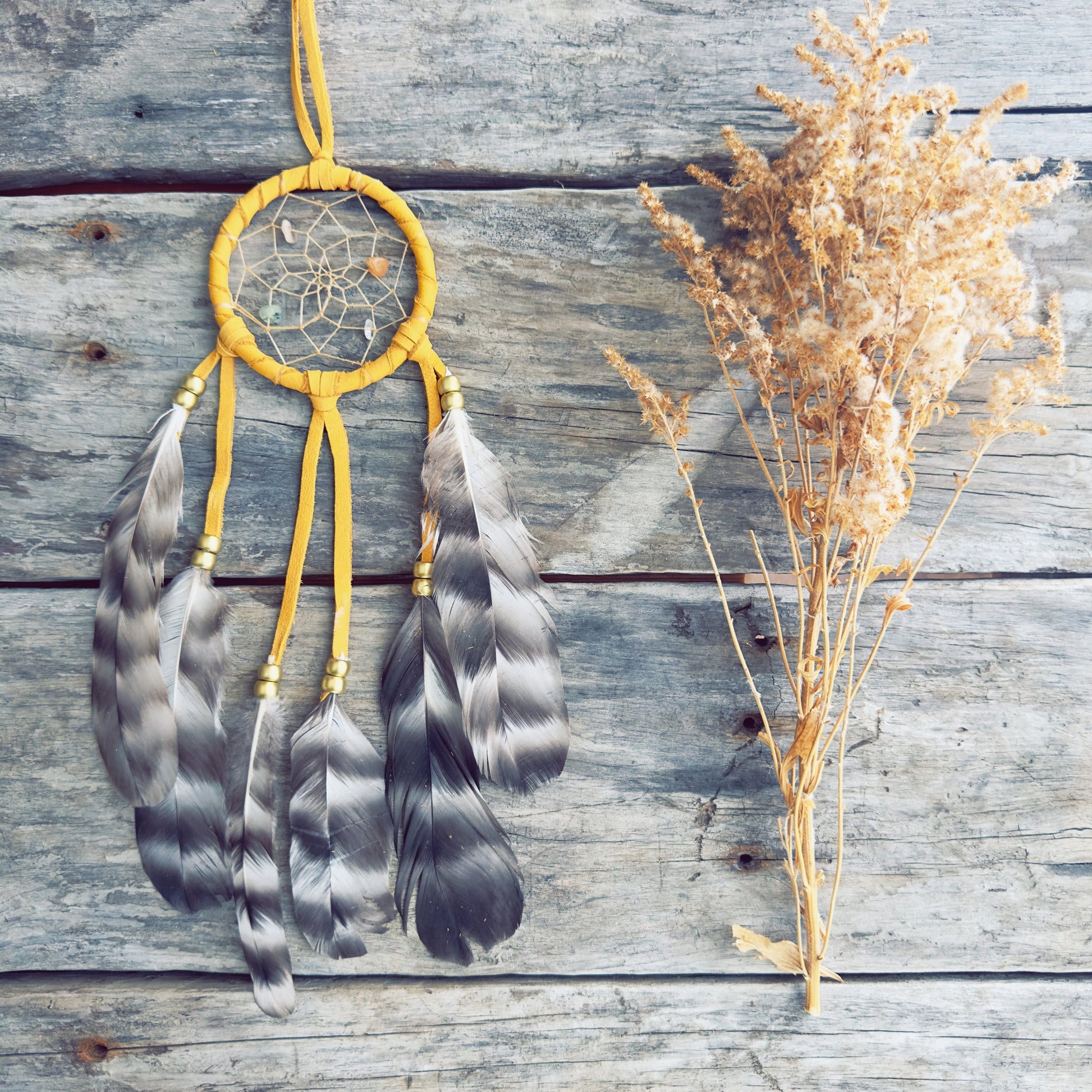 Pensé comme un objet de protection et d’équilibre, ce capteur de rêves accompagne le repos, apaise l’esprit et soutient les intentions positives.